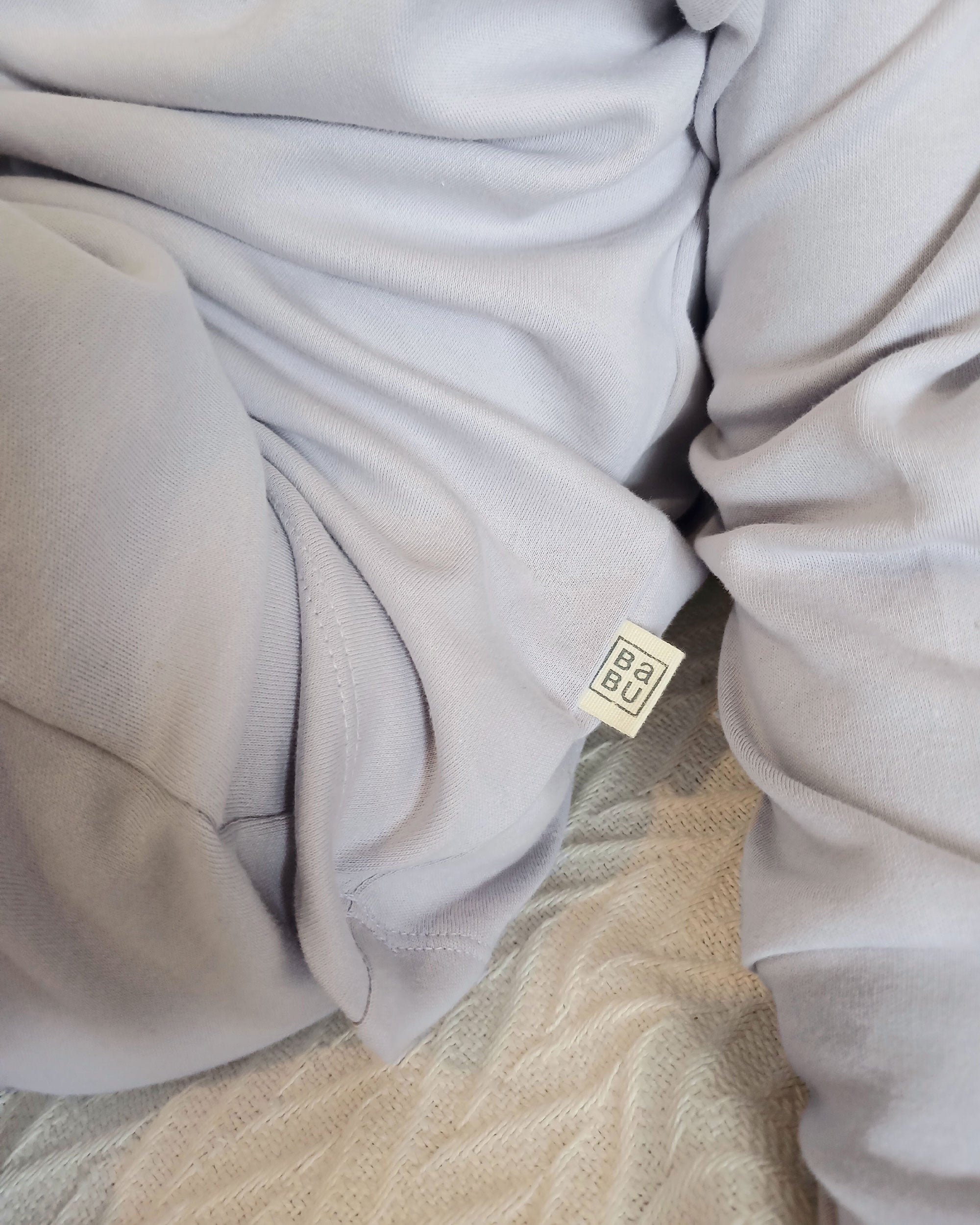 We make most of our cotton clothing basics out of interlock because the double knit construction means they're durable and long lasting, perfect for clothing little mess-makers. Interlock is also thick and super soft, while being naturally breathable, making for a cosy and feel-good fabric for daily essentials that you'll reach for all the time. These qualities are maintained over time and wash after wash too, Babu interlock clothing will keep it's softness and shape, and won't pill.