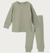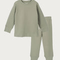 We make most of our cotton clothing basics out of interlock because the double knit construction means they're durable and long lasting, perfect for clothing little mess-makers. Interlock is also thick and super soft, while being naturally breathable, making for a cosy and feel-good fabric for daily essentials that you'll reach for all the time. These qualities are maintained over time and wash after wash too, Babu interlock clothing will keep it's softness and shape, and won't pill.