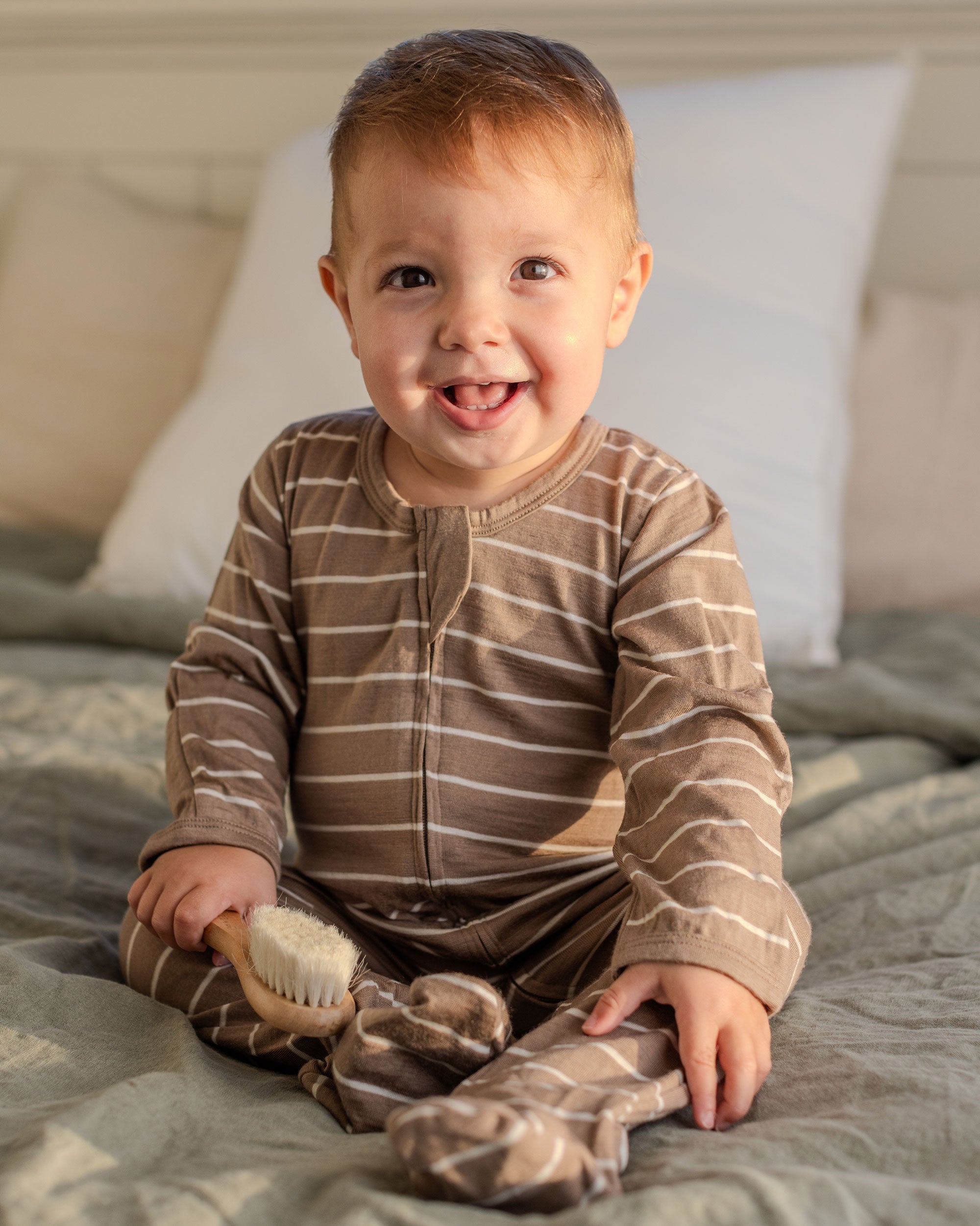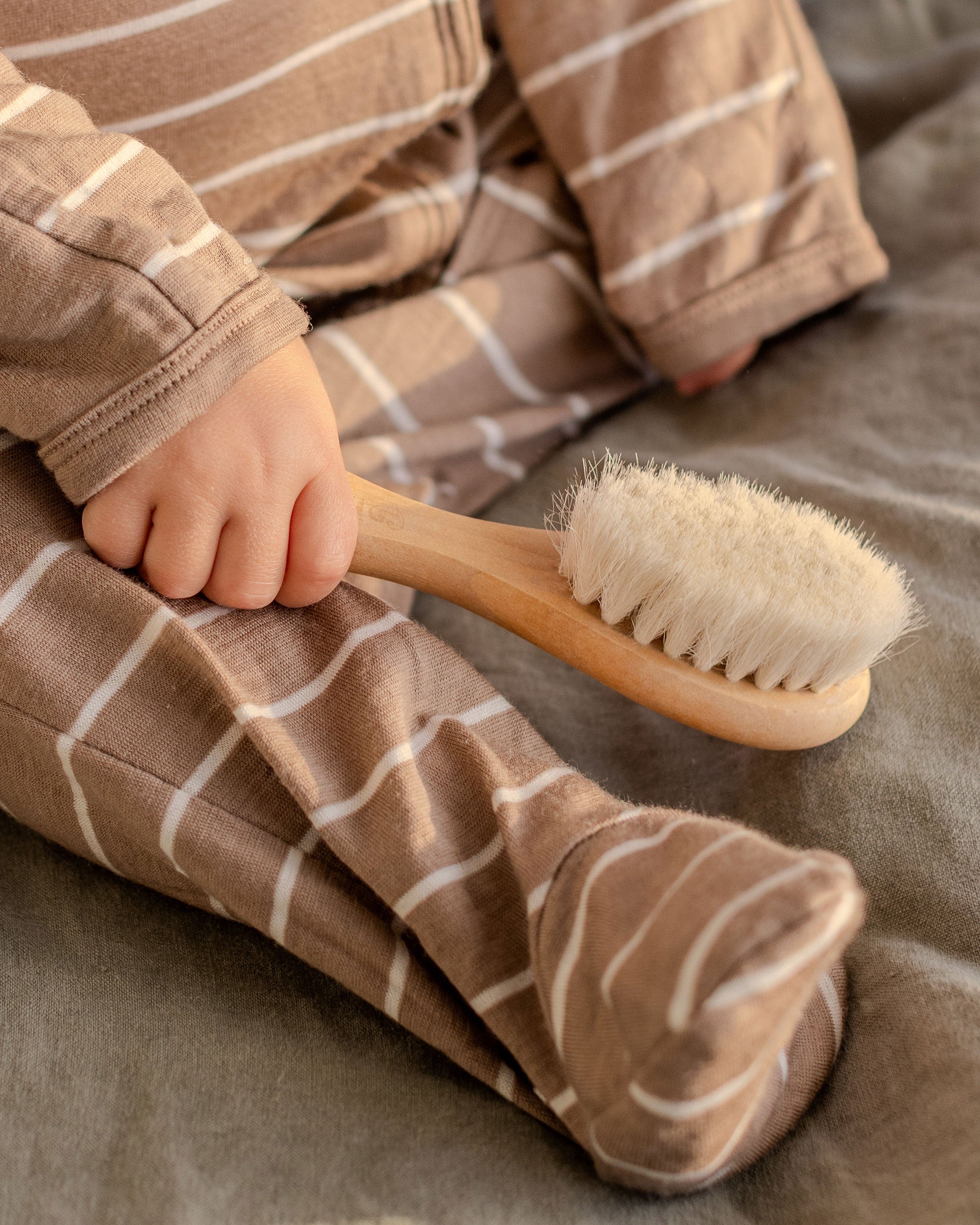 With luxuriously soft fine goats hair bristles, our baby brush is perfectly gentle, yet effective tool for supporting baby's well-being. Carefully exfoliate dry skin, promote blood flow and prevent cradle cap, all whilst providing a nurturing massage for your little one.